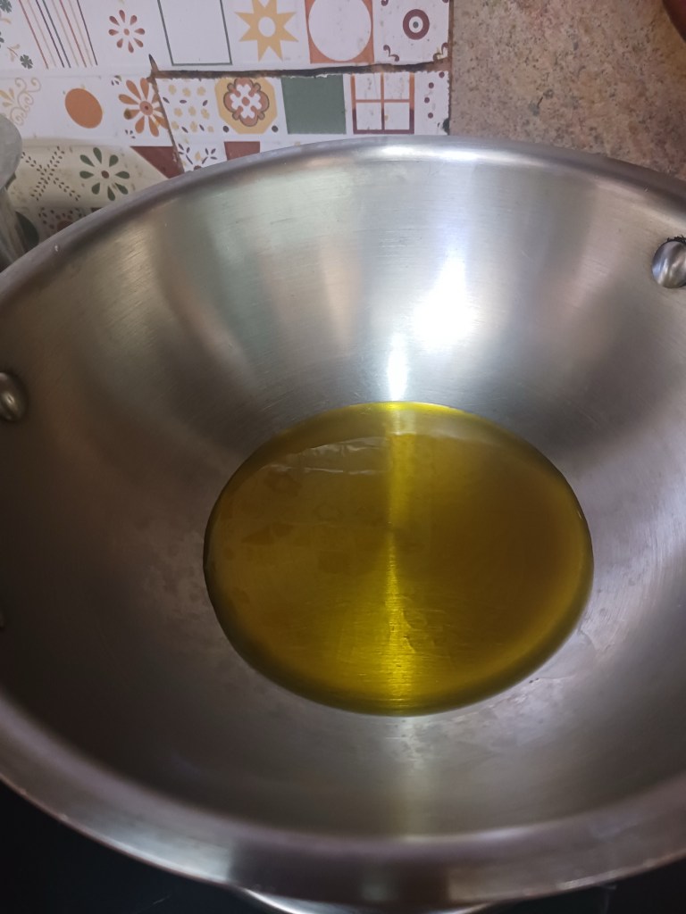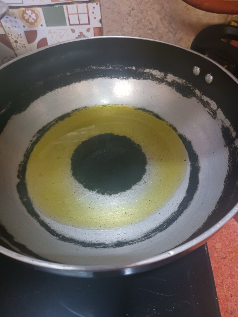 Step 3. Heat 2 serving spoon of cooking oil in a frying pan.
