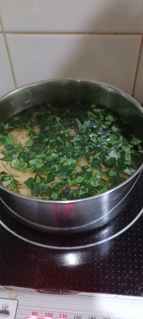 Ingredients: Pasta, fresh green parsley, salt, red chilli, 4 strands of Kale leaves, milk, butter, olive oil, garlic cloves.