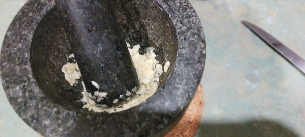 Step 7. Use a pestle or mixer grinder to make a paste of the 3 big garlic cloves.