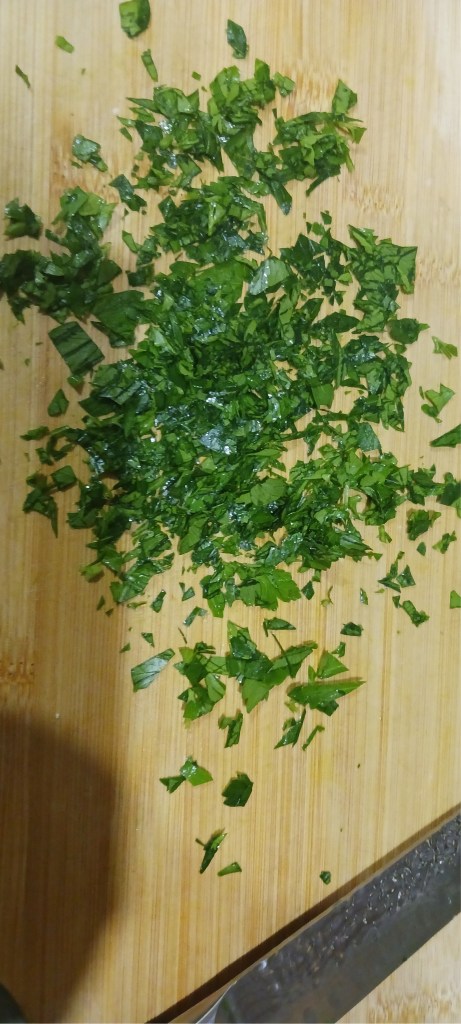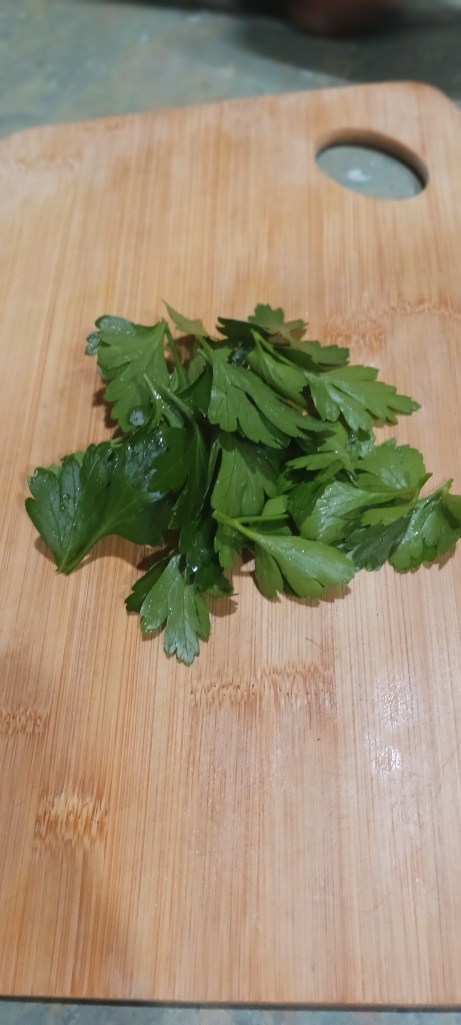 Step 18. Take the leaves of parsley and put it on a chopping board.