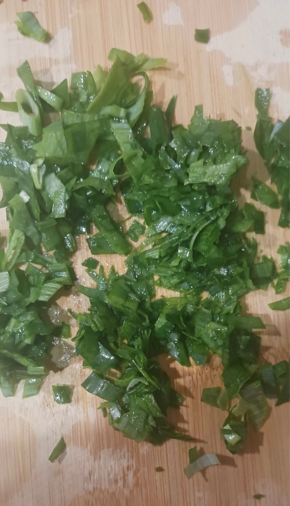 Step 4. Take spring onions on a chopping board and cut it in fine parts.