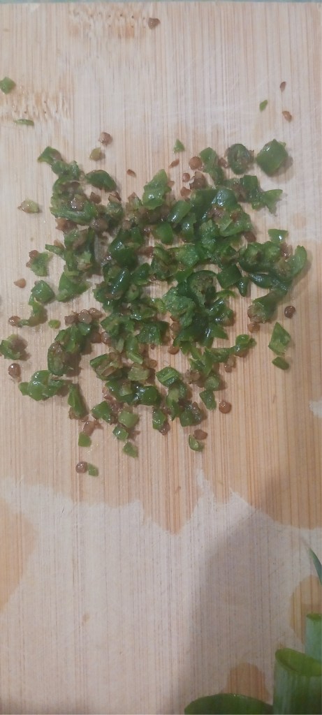 Step 5. Cut finely green chilli in case you are using red chili no need to follow this step.