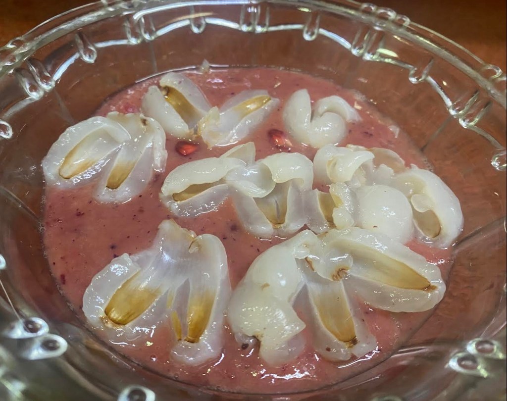 Here is Lichi (also spelled as Lichee) delight in fruit mashup.