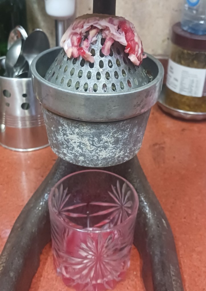 Step 8. Take the pomegranate and make a juice out of it in a juicer, I had this squeezer to do the same, you can use any juicer.