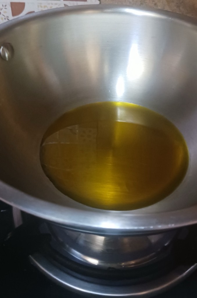 Step 3. Heat 5 tablespoons cooking oil, I used mustard oil, as only this was available for cooking here, you may choose your cooking oil,