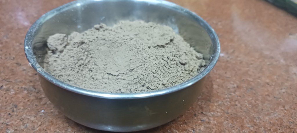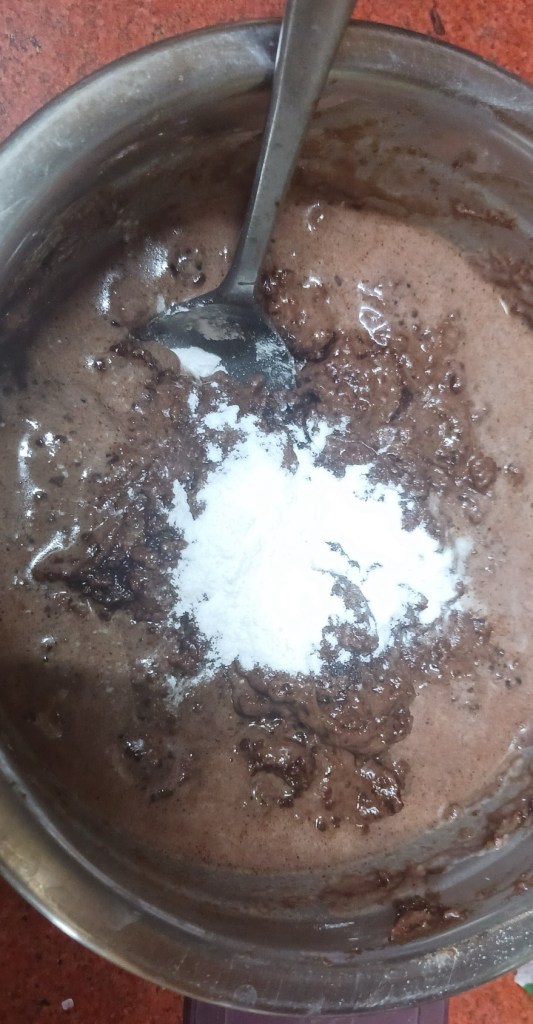 Step 2. Take 3 tablespoons of cocoa powder, that’s half the bowl you shall choose for measuring.