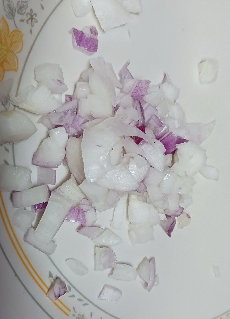 Step 3. Cut one onion and one potato finely