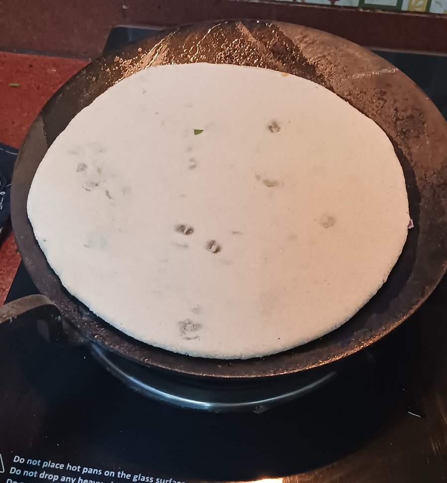 Step 13. In a while flip side and apply cooking oil on cooked side of the stuffed bread.