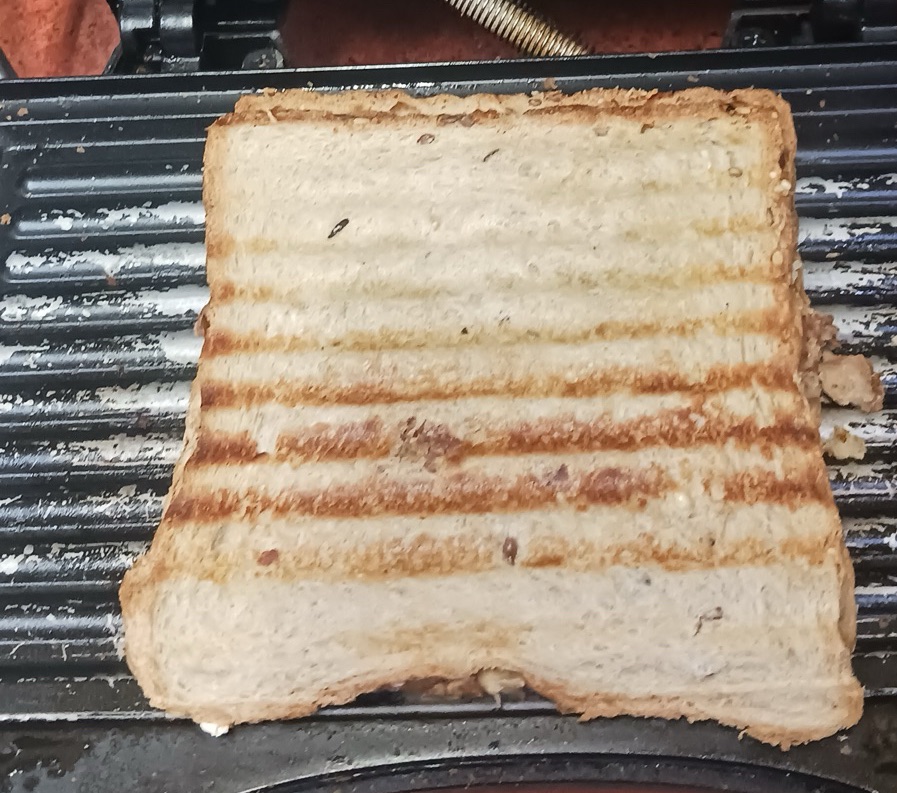 Step 7. Heat a toaster, apply butter on toaster and keep one bread over the bread with stuffings, put it in toaster.