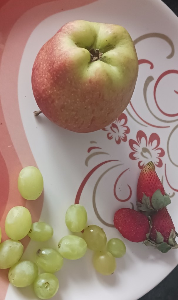 Step 1. Take one small apple, 10-12 grapes which are sweet in taste, not sour, 3 strawberries.