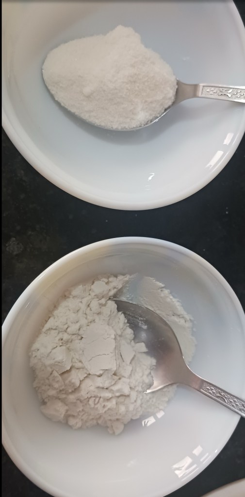 Step 5. Take one tablespoon of sugar/ sugar powder. Here are various kinds of sugar powder. I used Bura Sugar, found in India. You can use sugar granules it would be cooked well.