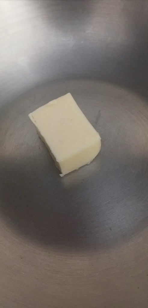 Step 6. Take a cube of salted butter, put it in frying pan.