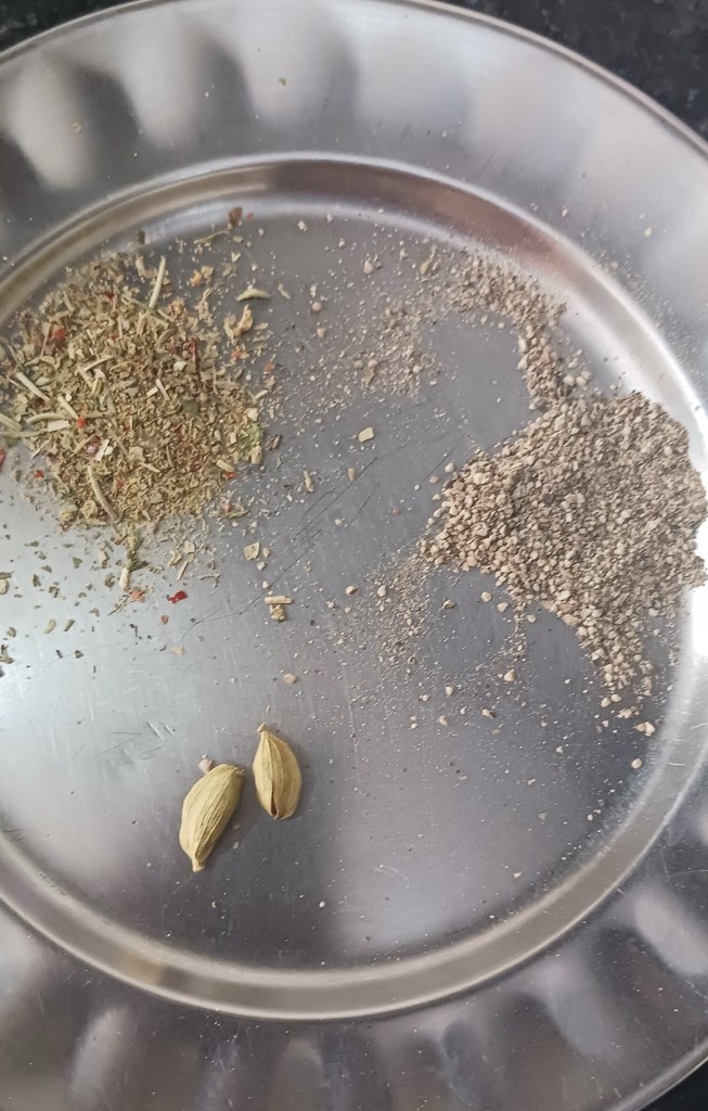 Step 18. Take 2 cardamom, one teaspoon of black pepper powder, one teaspoon of spoon of Italian seasoning.