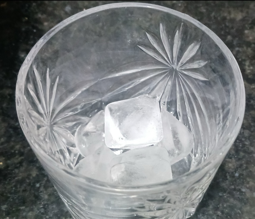 Step 10. Take a serving glass with ice, five ice cubes.