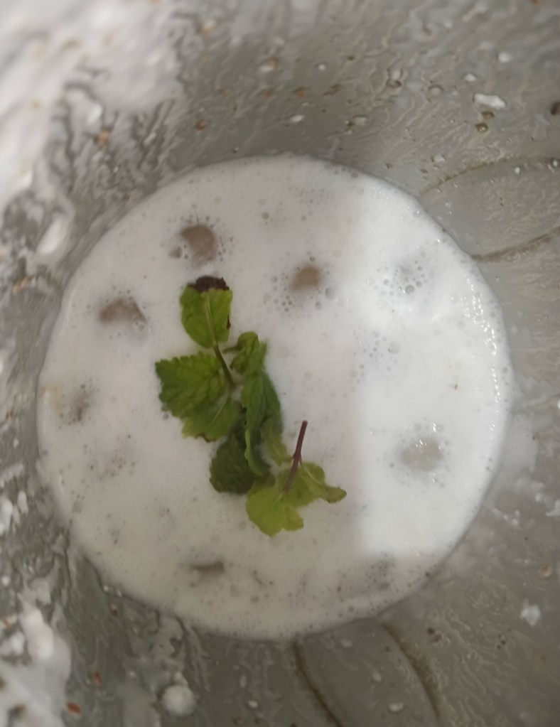 Ingredients: 1 cup curd/ yogurt, cumin powder, salt, ice cubes, fresh mint leaves.