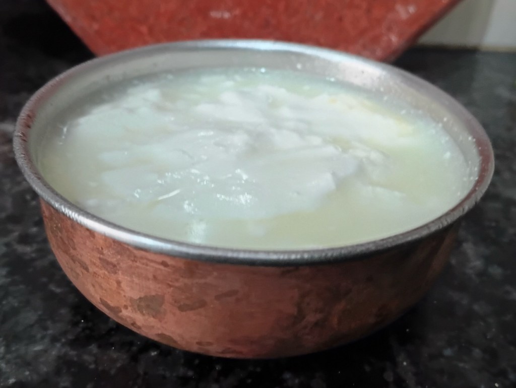 Step 1. Take one bowl of curd/ yogurt from fridge. It should be fresh non sour.