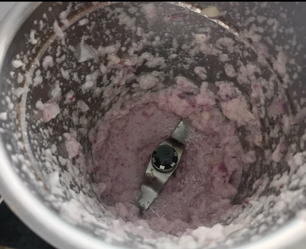 Step 5. Mince the onion in a mixture grinder. Mince onion well.