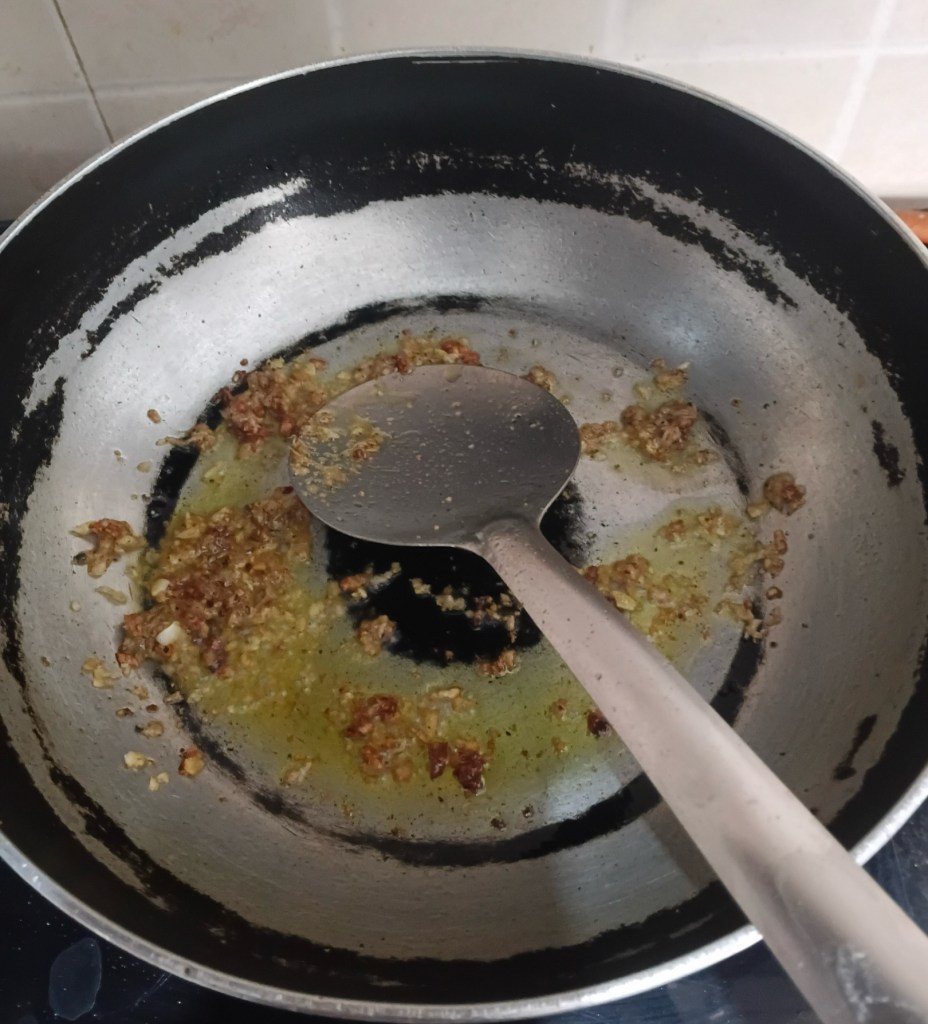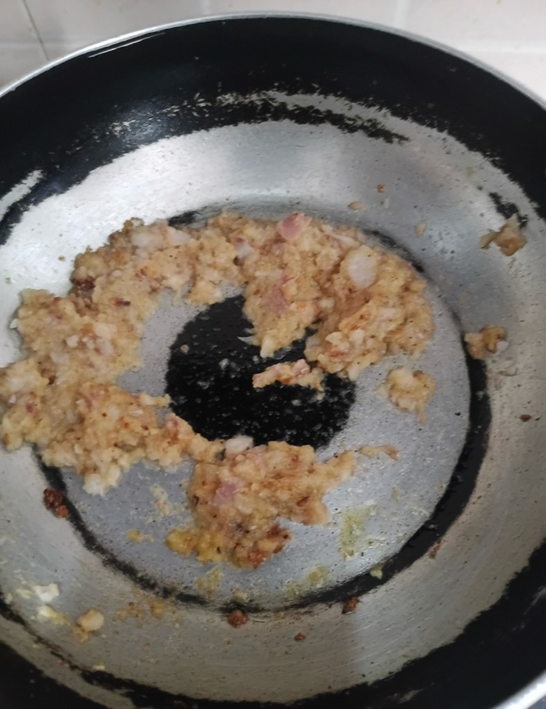 Step 9. Mix well, let it heat, keep mixing till onion is well cooked, that is golden in color. Close the gas lid.