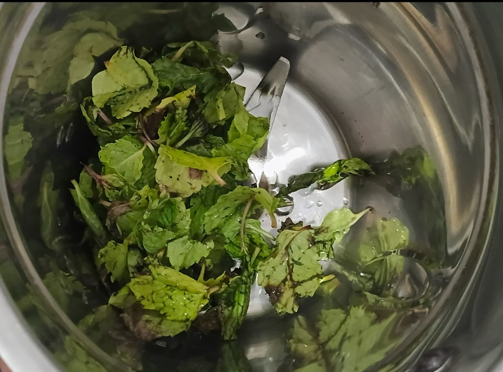 Step 6. Now add the above washed mint to mixing grinder.