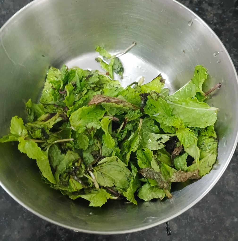 Step 1. Take handful of fresh mint leaves.