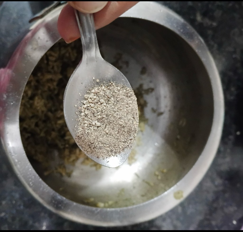 Step 7. Add above water in mixture grinder and grind it well. I took half cup water. Add half spoon of salt now.