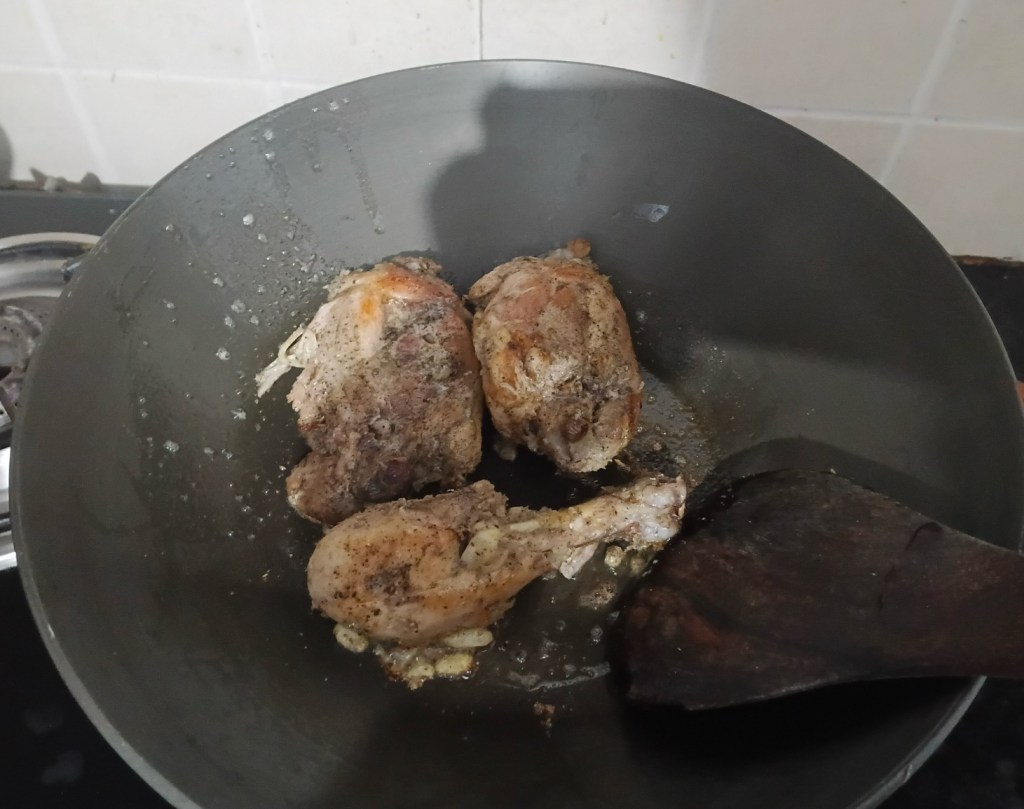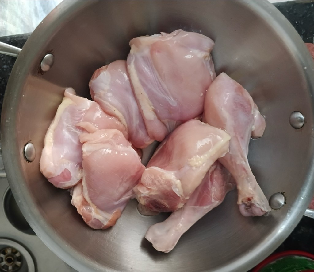 Step 5. Boil chicken for 2 whistles in a pressure cooker.