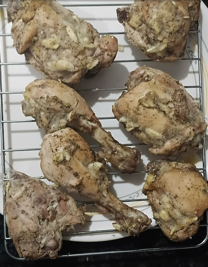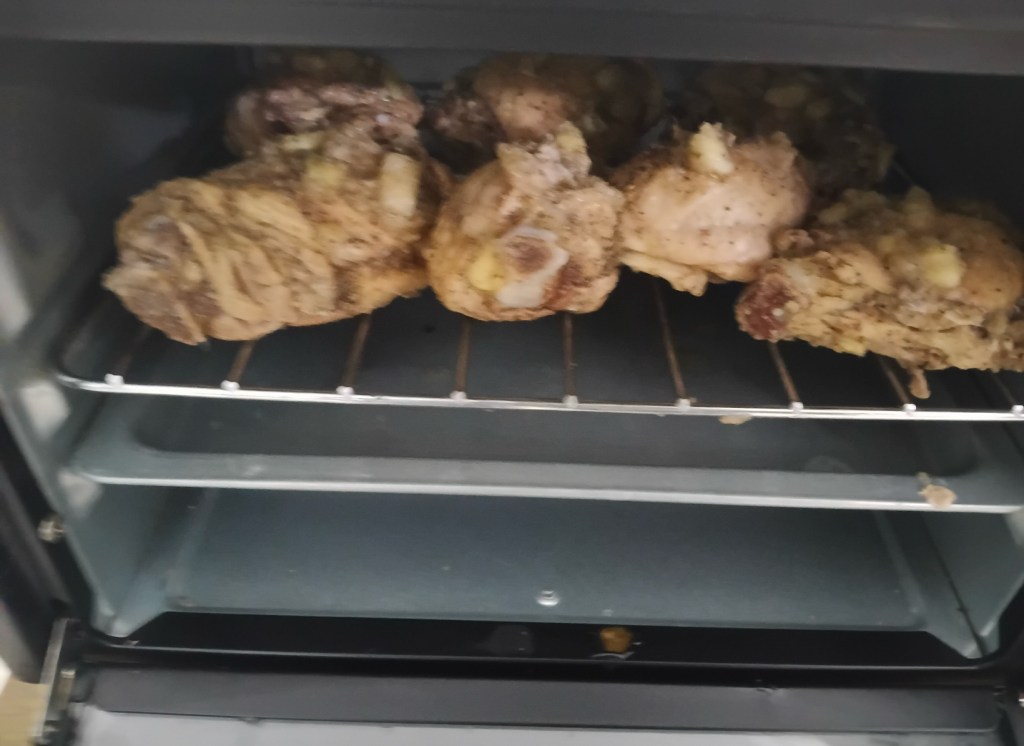 Step 8. Now, arrange the chicken on grill of your OTG.