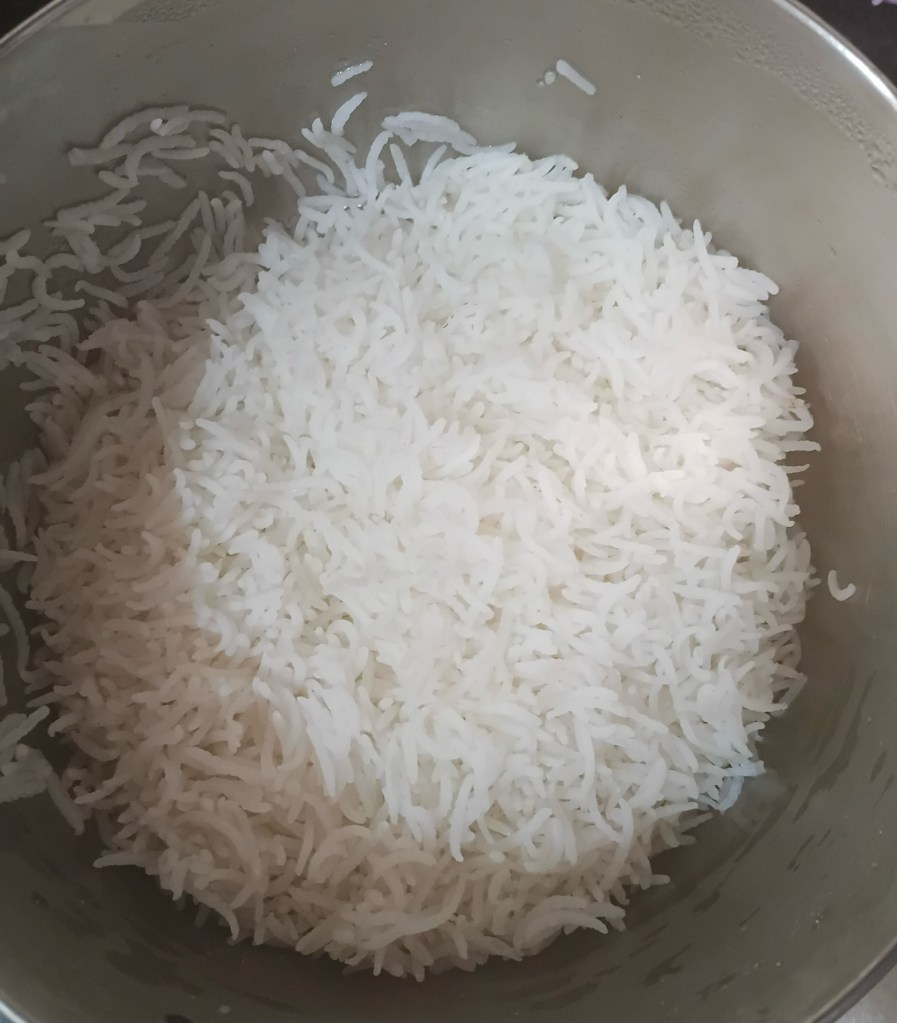 Step 4. Heat the rice till then in open pan. Once rice is cooked and made remove excess water through sieve.