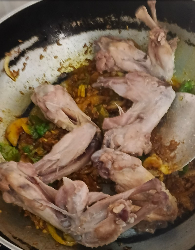 Step 3. Heat the chicken in pressure cooker, give 5 whistles.