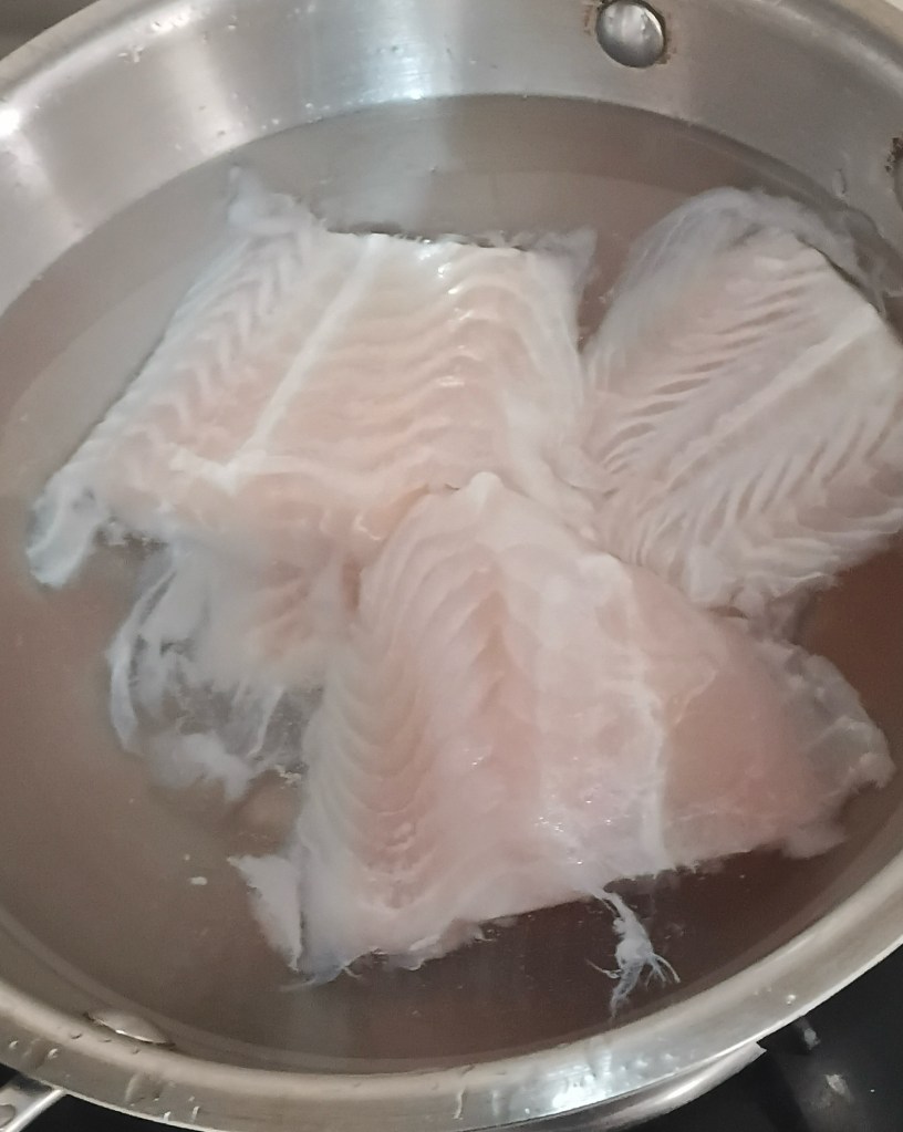 Step 5. Now fish is completely boiled. Take a seive and pour water out. Wash it once.