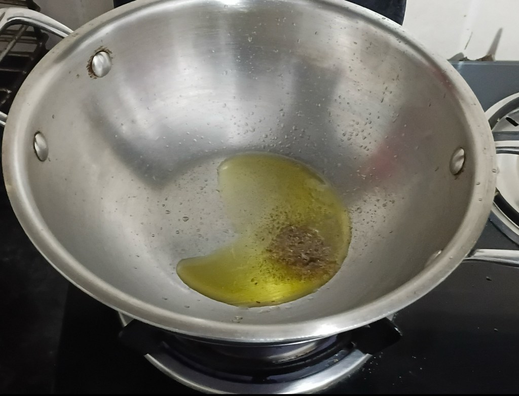 Step 7. Heat 2 tablespoons of cooking oil and add black pepper for simmering.