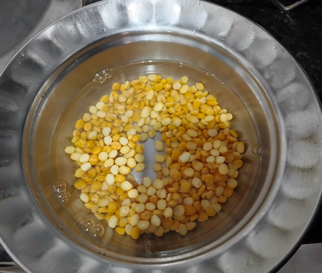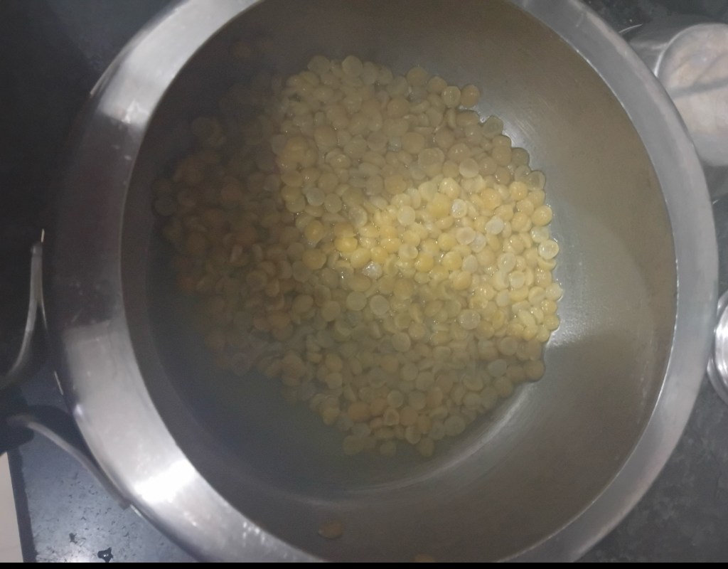 Step 1. Take half bowl of split chickpeas these are quite affordable than garbanzo chickpeas.