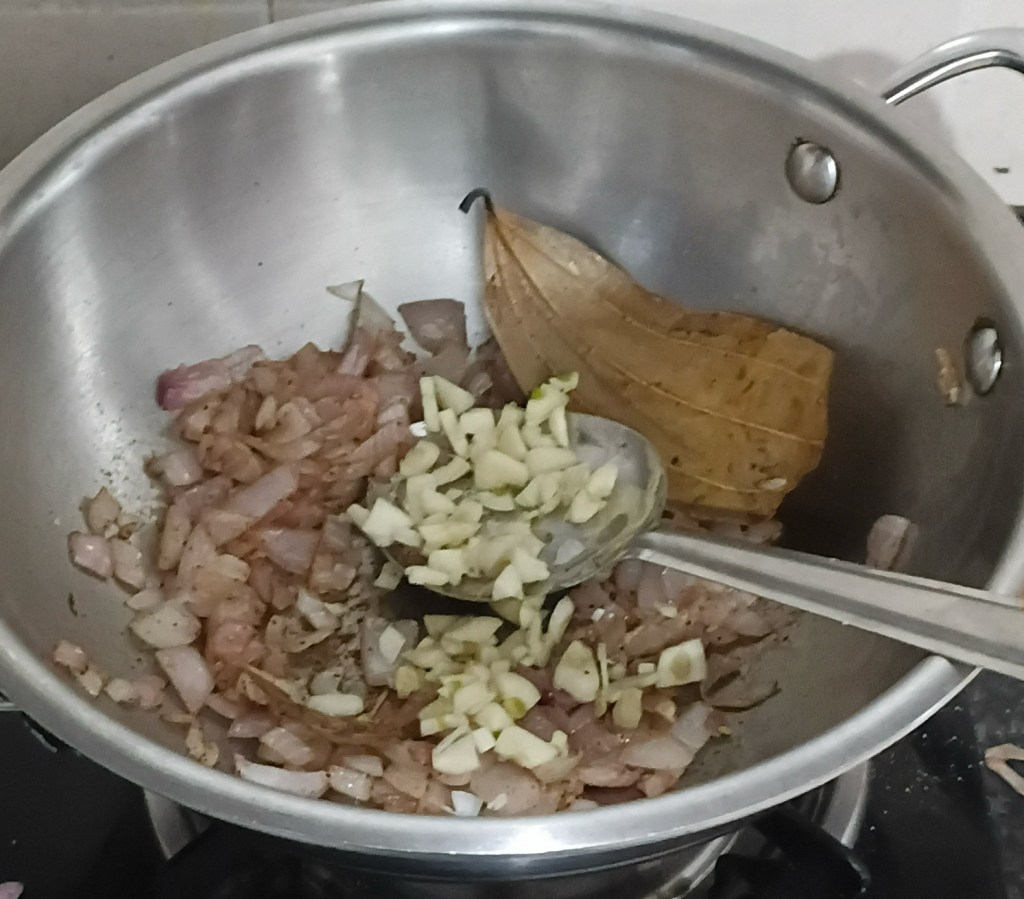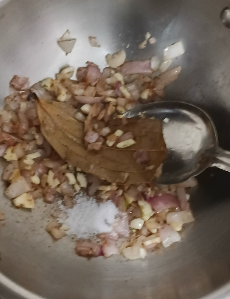 Step 7. Now add bay leaf and 1 tsp black pepper in it. Let it heat mix it.