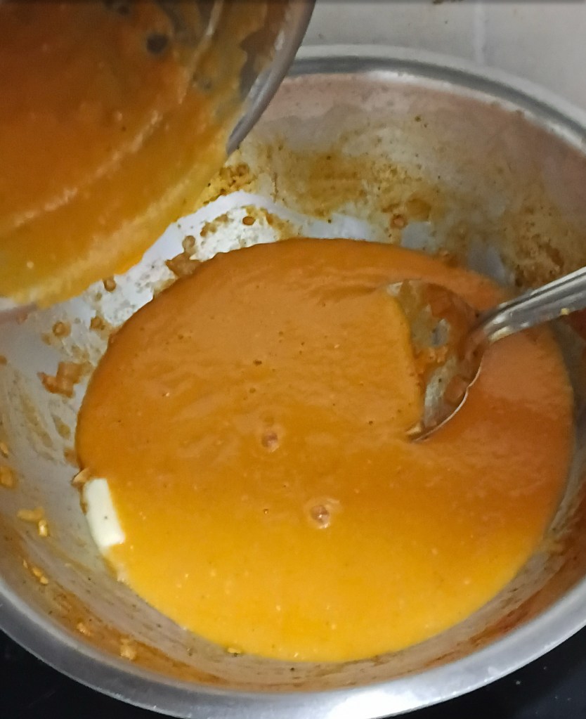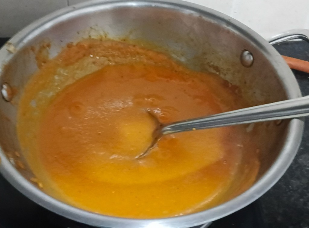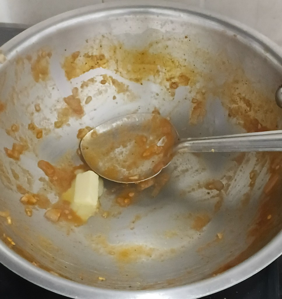 Step 20. It’s smooth now and is not very dense. Take the same frying pan add one small block of butter in it. Heat it.