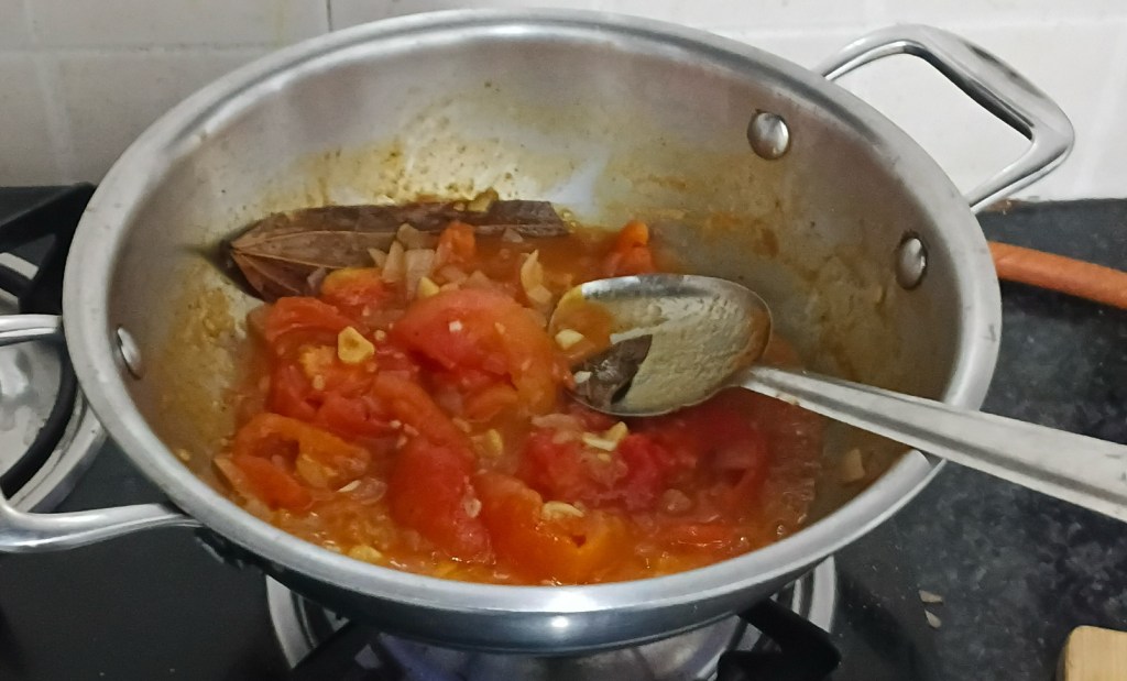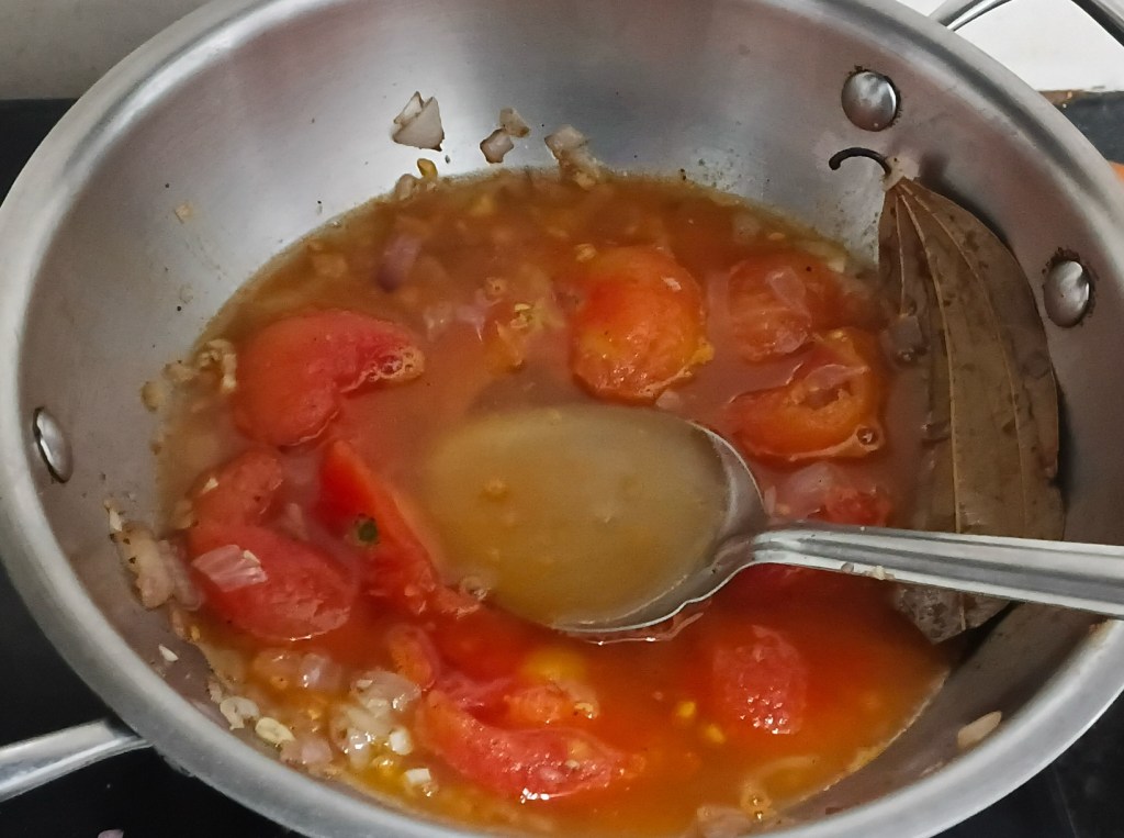 Step 13. Now add pealed tomatoes in frying pan.