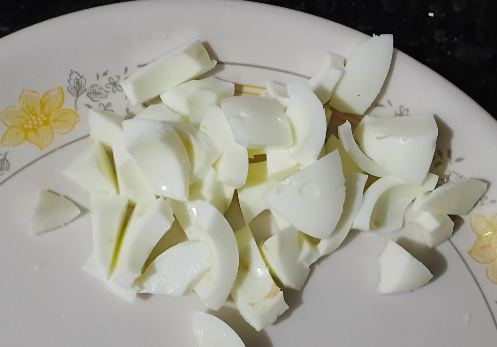 Step 5. Cut egg white in small parts.