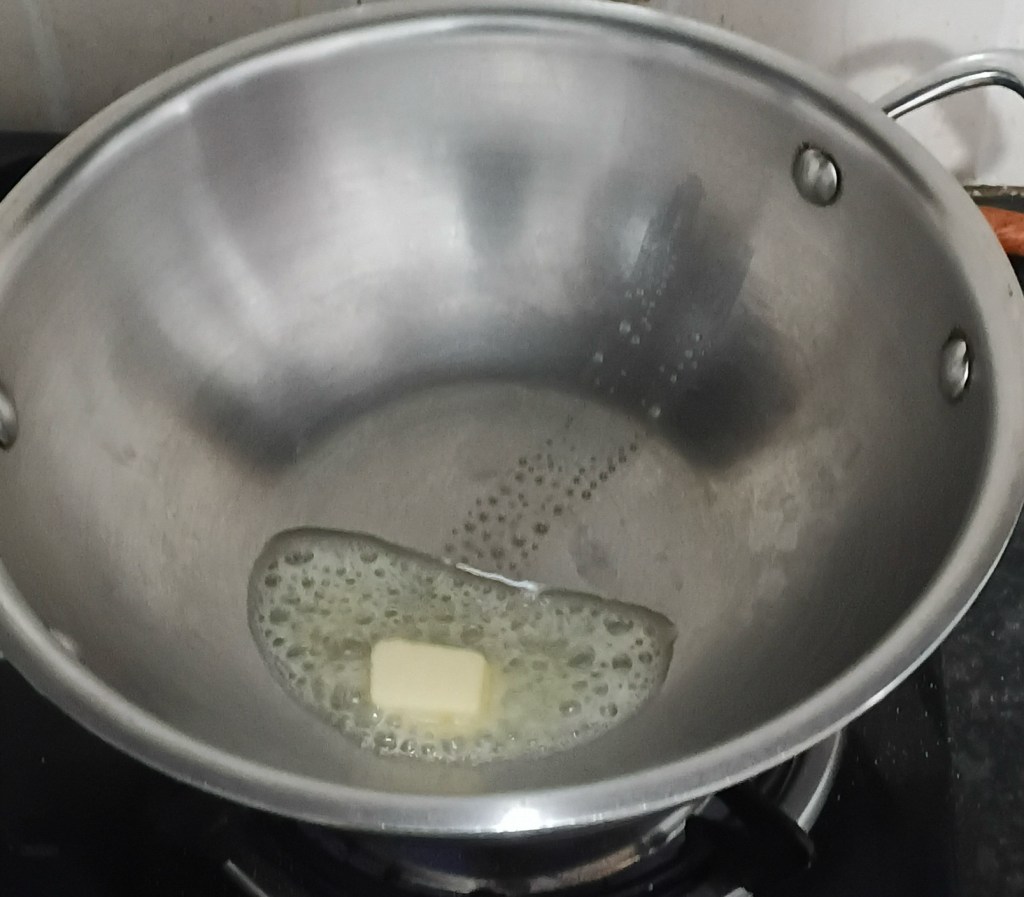Step 6. Now take a frying pan and add a cube of butter in it.
