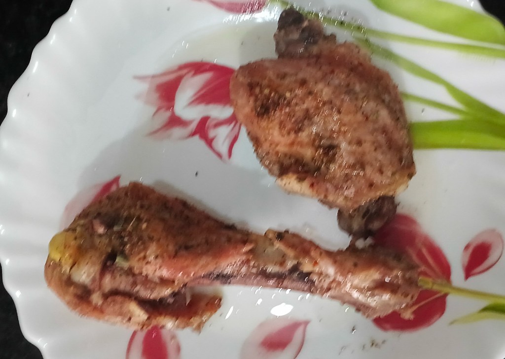 Step 4. Take two pieces of left over chicken from last night. I had roasted chicken that I made yesterday. Heat it in microwave.
