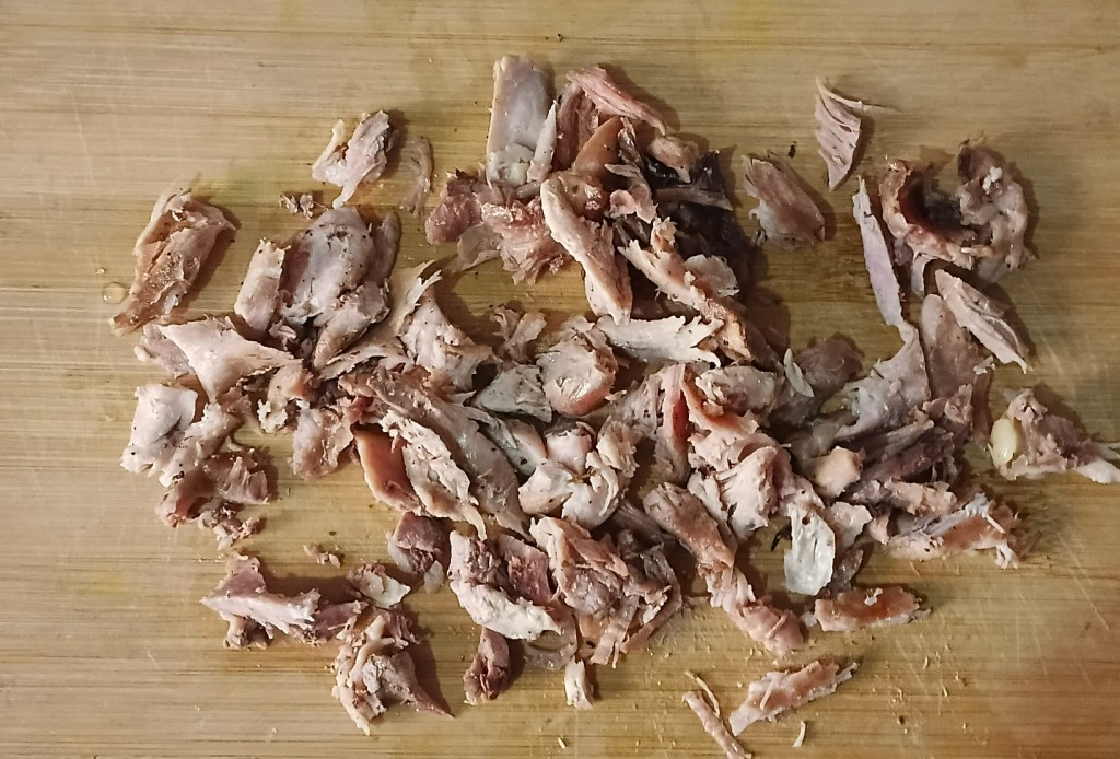 Step 5. Remove the bones and shred the chicken in small pieces.