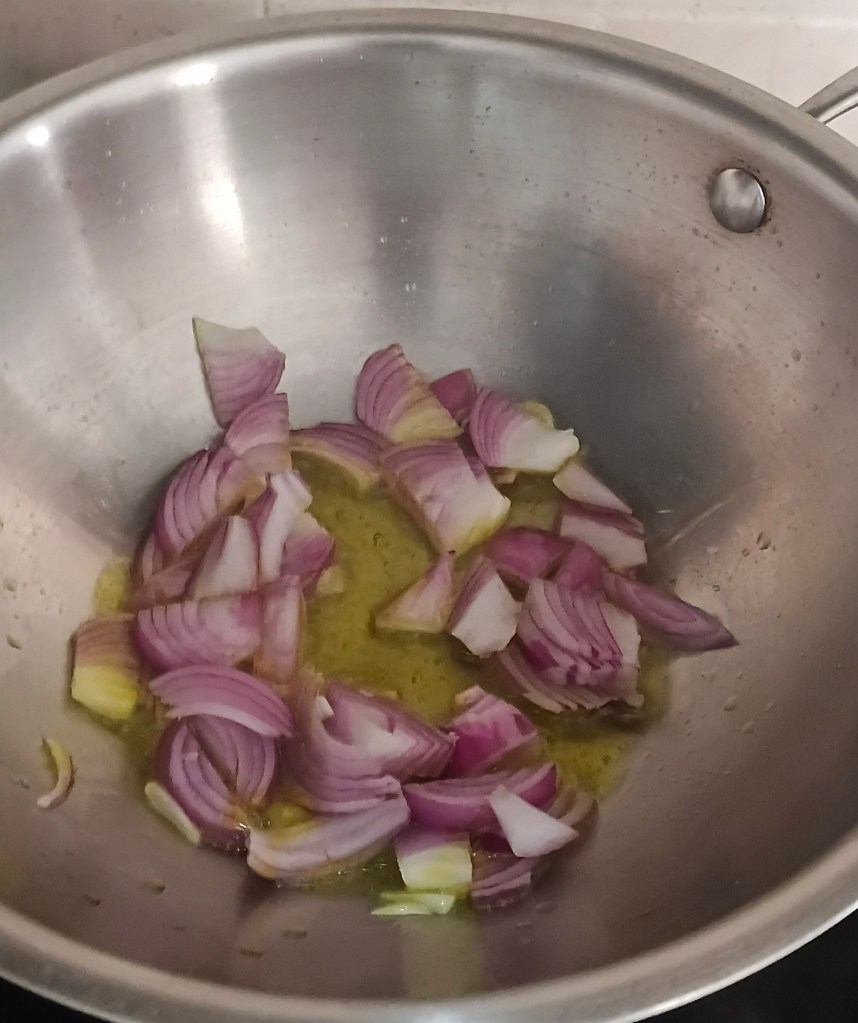 Step 5. Add cut onion in frying pan.
