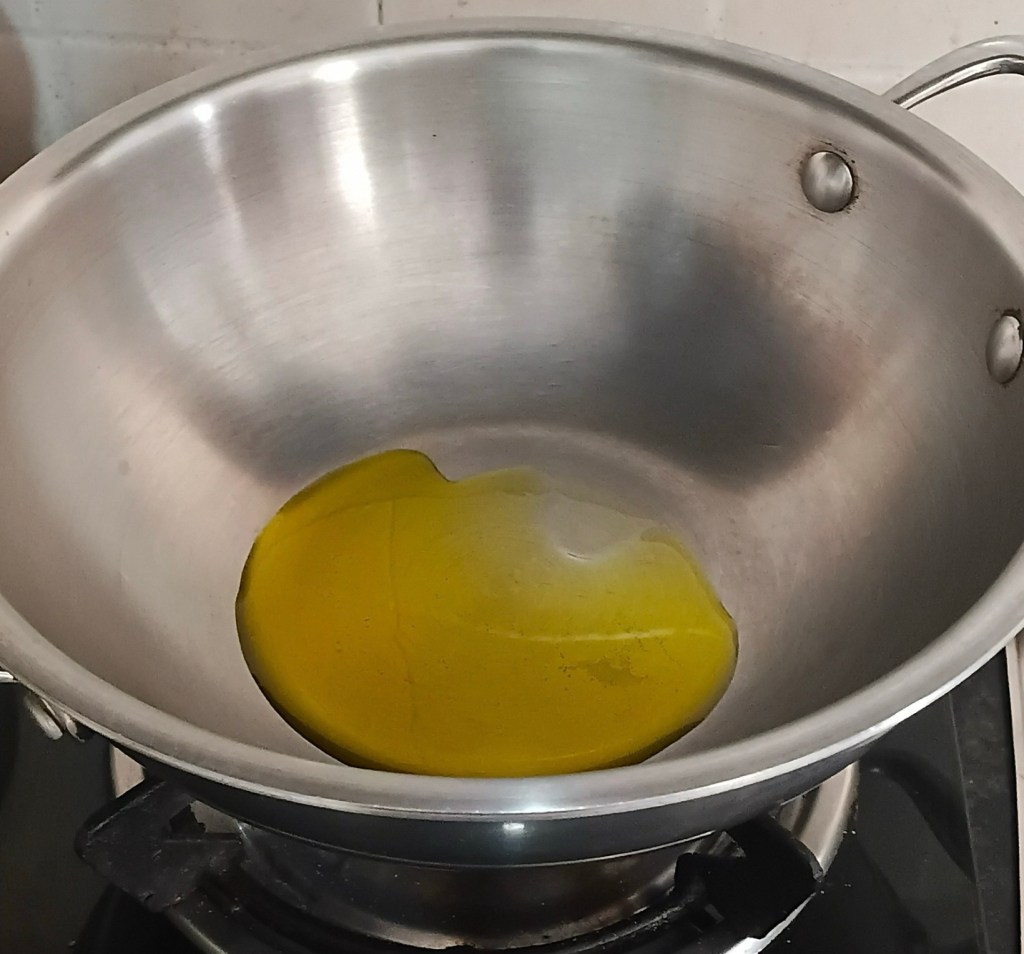 Step 4. Heat 1.5 serving spoon of cooking oil.