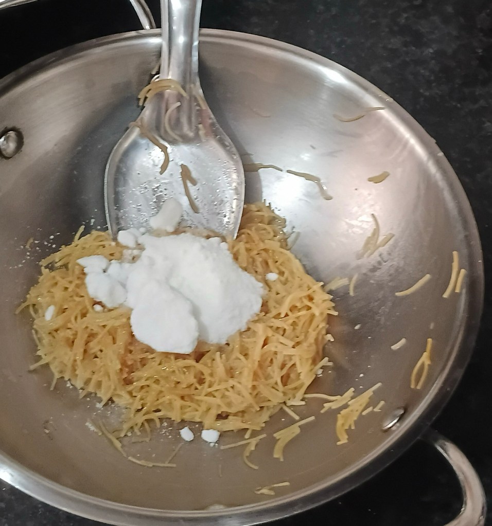Step 6. Add 2 spoon of burn sugar in the sieved vermicelli.