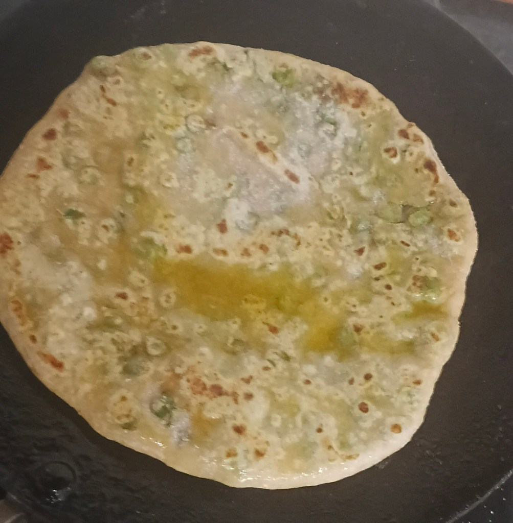 Step 16. The green peas spicy stuffed bread is ready now.