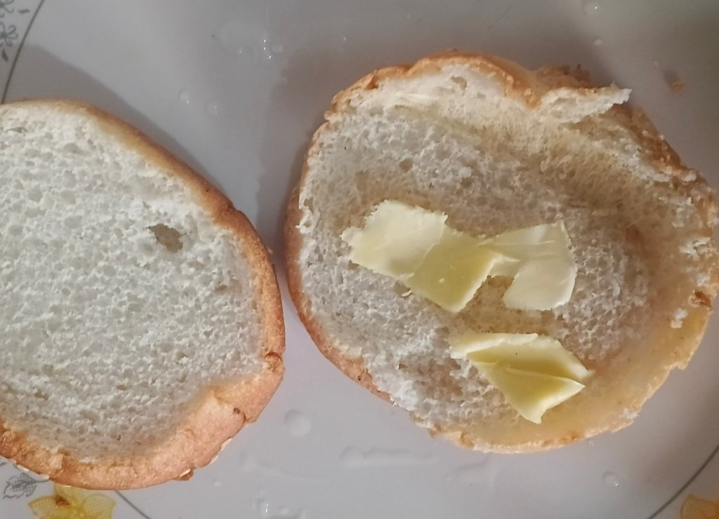 Step 7. Add some butter on lower part of bun, spread the butter.
