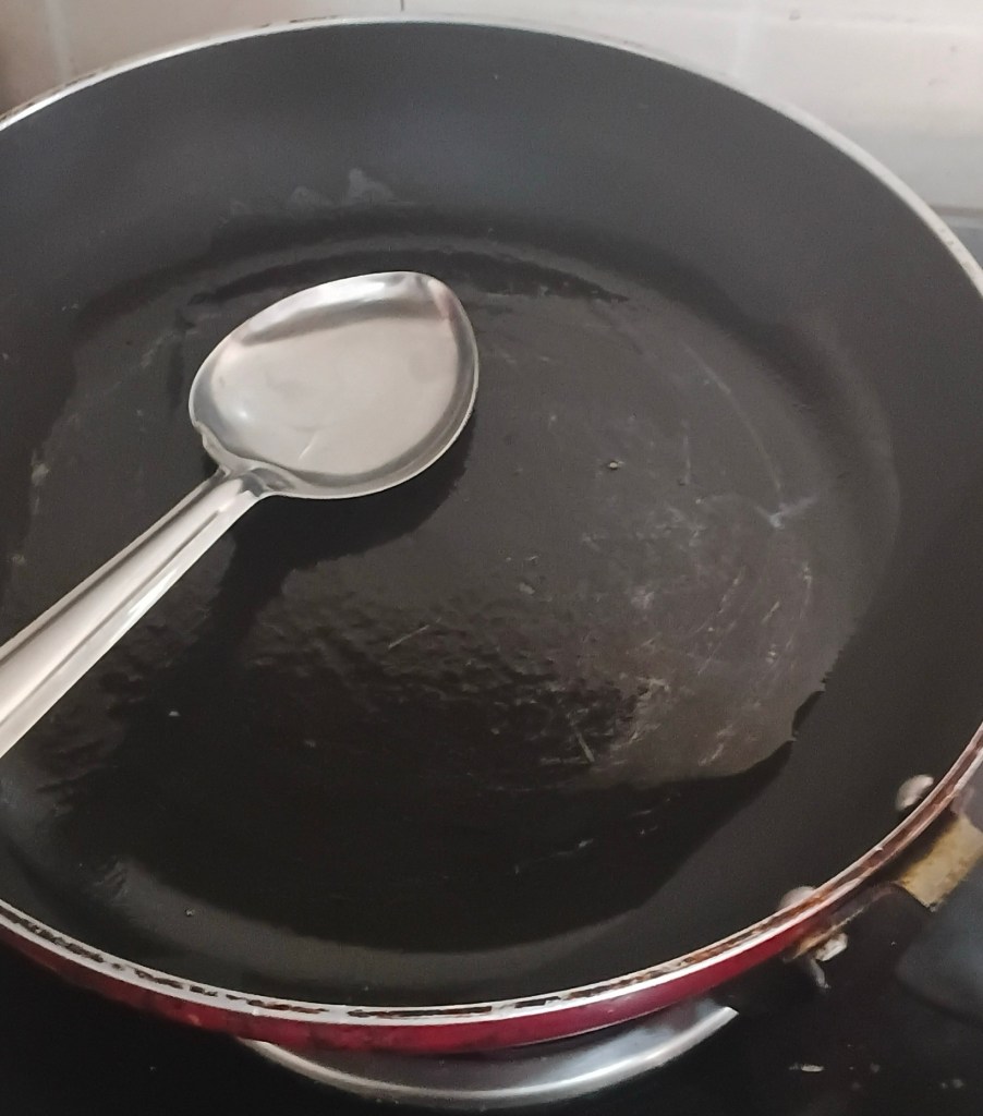 Step 5. Take a flat frying pan, add one tsp clarified butter in pan. You can make omelette in butter or cooking oil as well, as per the taste developed by you. Spread the butter in pan.