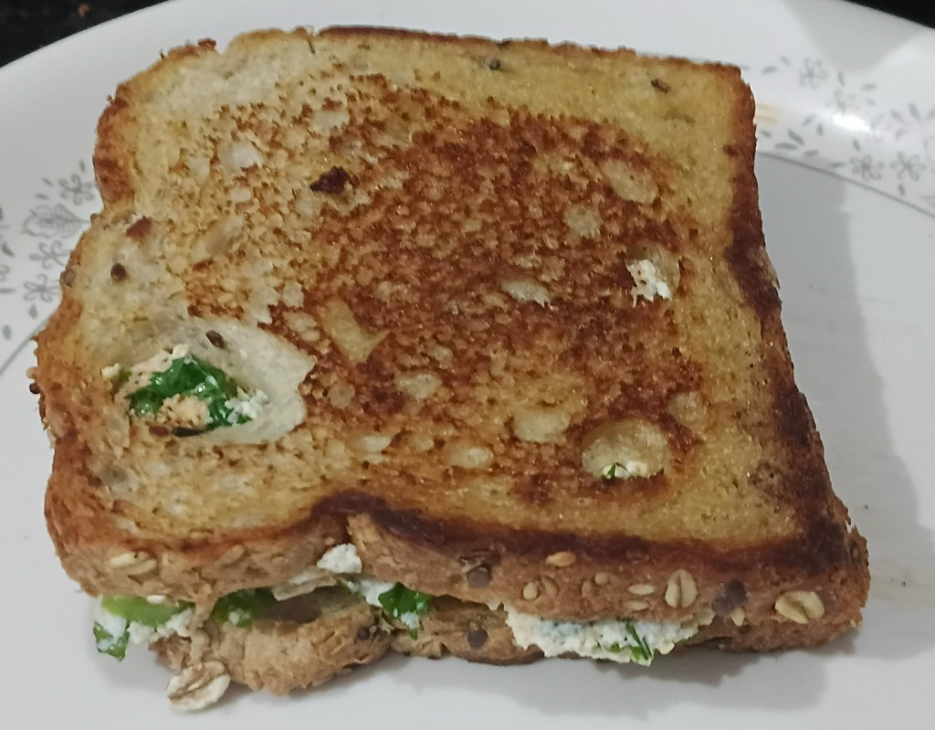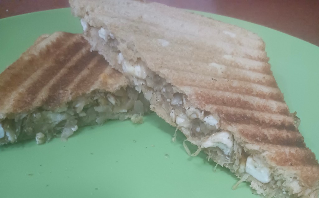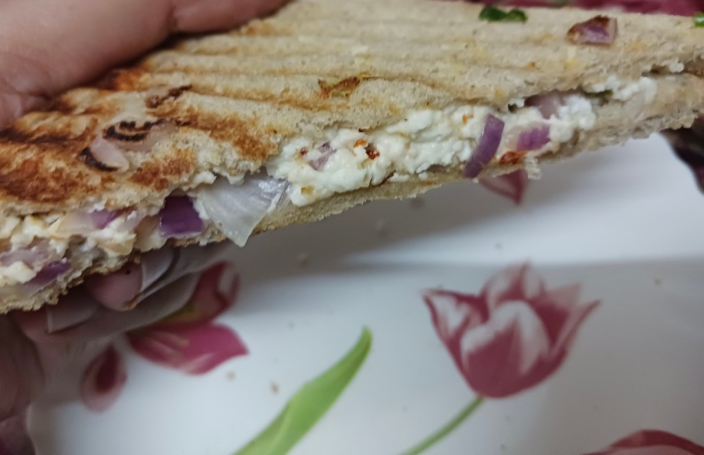 Pizza with cottage cheese base, ginger garlic flavoured base