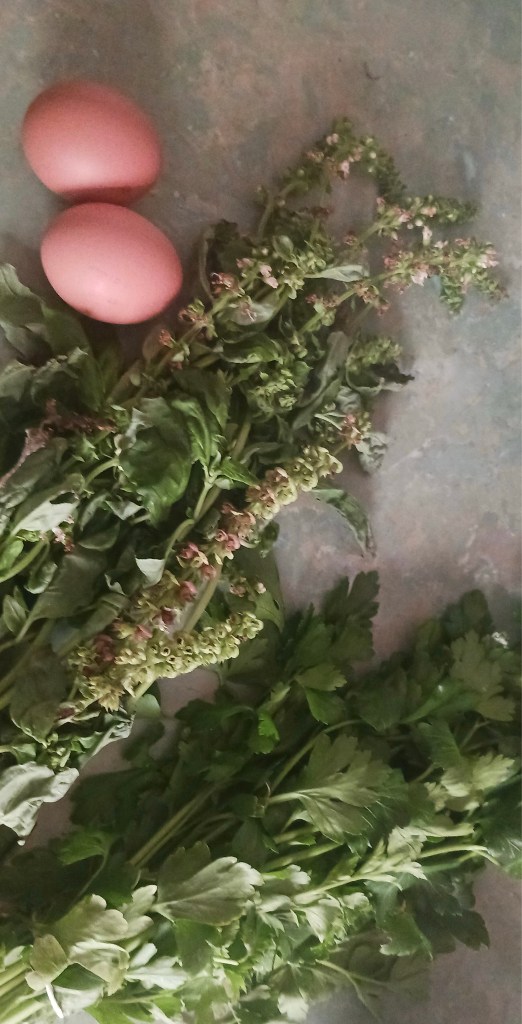 Long Chilli Omelette Flavoured with Fresh Parsley and Fresh Basil Leaves