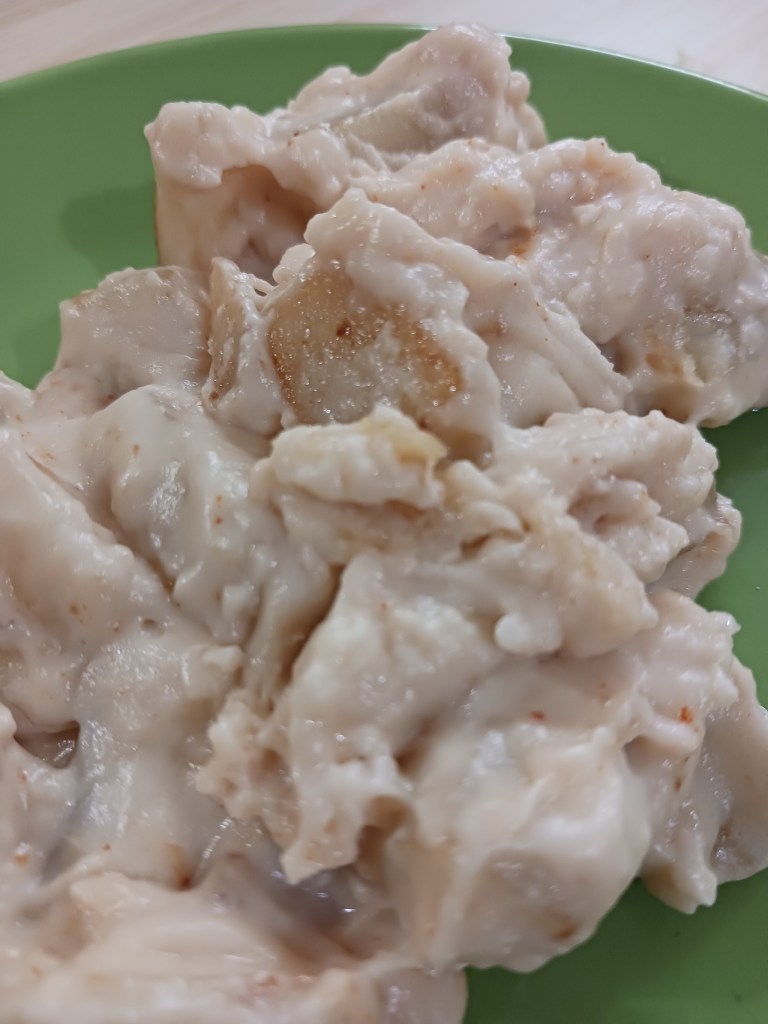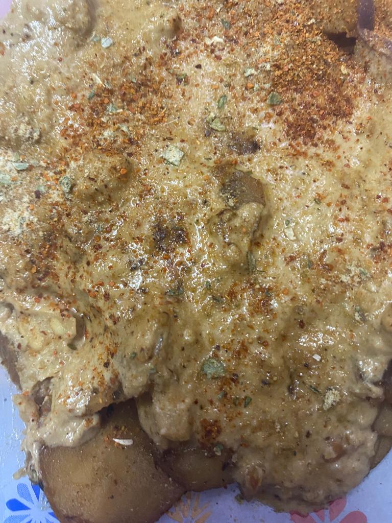 Hot broccoli/cauliflower potato salad – spicy and tasty